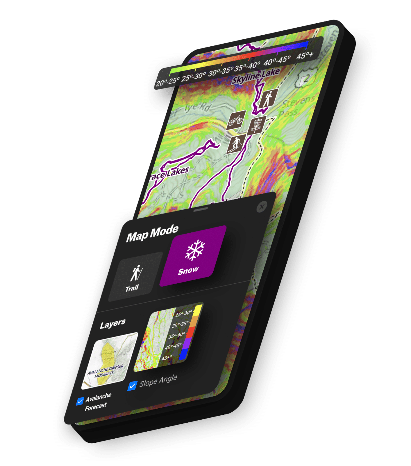Choose safer routes, stay mellow on high avalanche probability days, and mark scary terrain traps—all on the go.