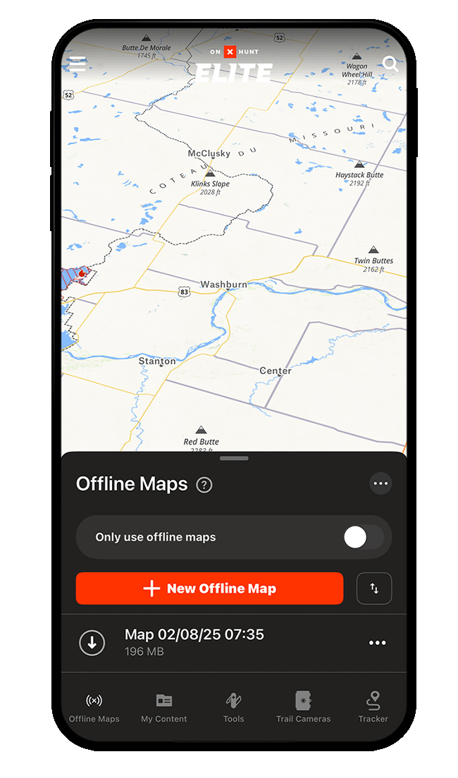 With an onX Hunt Premium or Elite Membership, the only limitation on the number of Offline Maps you can save is the available storage space on your phone. We keep our file sizes as small as possible to give you more room for more Offline Maps.